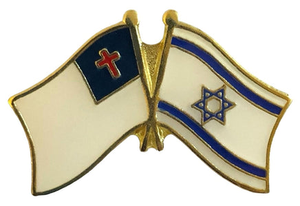 Christian & Israeli world flag friendship double lapel pins measure approximately 1" x 3/4" or 28 mm x 18.3 mm and have a butterfly clasp on the back of the pin. These very popular affordable lapel pins can be attached to your suit coat, cap, shirt, jacket or just collect them to represent where you have traveled.