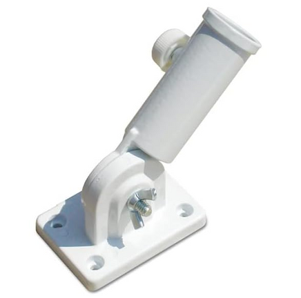 This white multi-position aluminum bracket holds 5′ to 8′ poles at various angles. Mounts to the side of a house, building, wall, post or tree. Comes with a set of mounting screws. Brackets are compatible with 1″ diameter flagpoles.