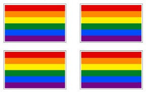 Rainbow flag stickers measure 1" x 1.5" and there are 50 stickers with the same flag design per sheet. The peel-off stickers are self adhesive and are very popular for scrapbooks and school projects. Paper flag stickers are not intended for outdoor use. Almost any international world country flag design is available.